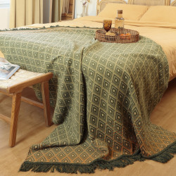 В нашем каталоге вы найдёте однотонные пледы в трендовых оттенках — оливковом, пудровом, графитовом, карамельном, бежевом. Также представлены модели с геометрическими, этническими и абстрактными узорами, лёгкие летние варианты из хлопка и бамбука, плотные пледы из микрофибры или шерстяных смесей для зимы, а также изделия с кисточками, фактурным переплетением или жаккардовым узором.